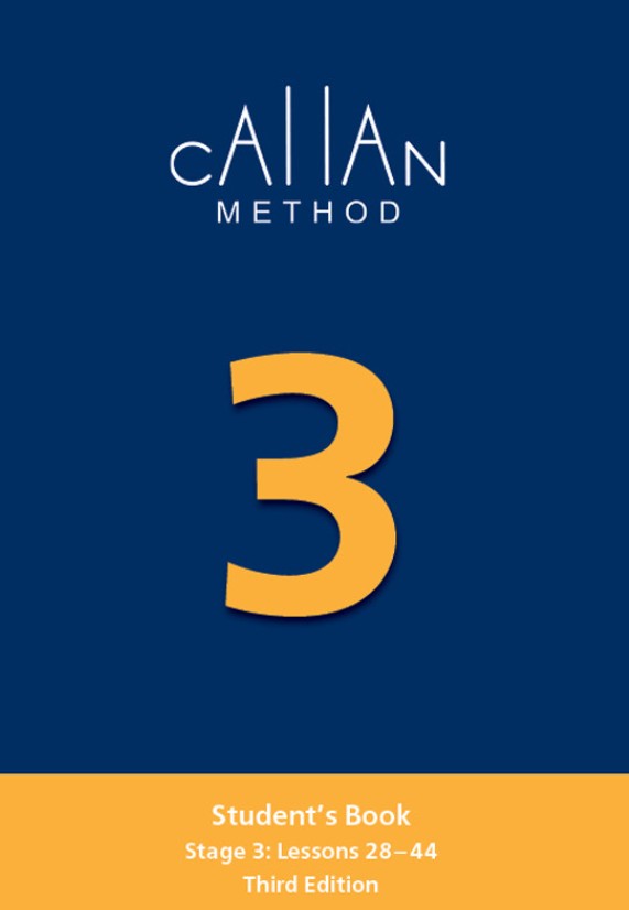 Tretia úroveň kurzu Callan English sa zameriava na jazyk na úrovni A1 aj A2. V tretej úrovni si študenti upevňujú znalosti z prvých dvoch úrovní A1 a začínajú s učením na úrovni A2. Zoznámia sa s takmer 400 novými slovnými zásobami a precvičujú si rozprávanie o minulom čase s použitím jednoduchých minulých tvarov pravidelných slovies a viac ako 40 bežných nepravidelných slovies.