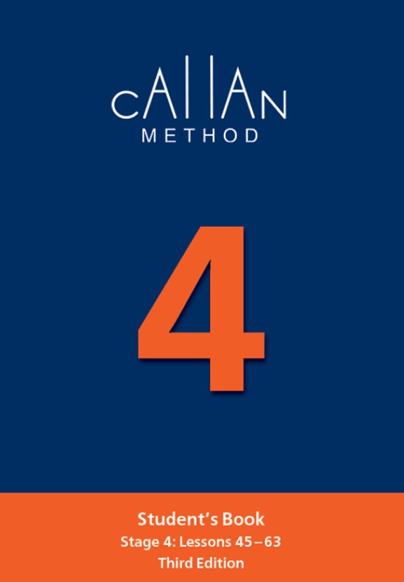 4. stupeň kurzu Callan English sa zameriava na jazyk na úrovni A2. Okrem učenia sa takmer 450 nových slovných spojení sa študenti oboznamujú s budúcimi tvarmi "will" a "going to", bežnými modálnymi pomocnými slovesami (napr. "shall", "should", "could"), predprítomným časom (napr. "they have eated"), prvým podmienečným časom (napr. "If you try, you will succeed" a minulým priebehovým časom (napr. "I was sleeping").