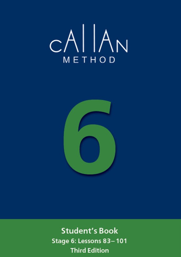 Stage 6 of Callan English sa zameriava na jazyk na úrovni B1. Študenti sa naučia takmer 500 slov a fráz, prvýkrát formálne sa oboznámia so vzťažnými vetnými vetami a zoznámia sa s novými gramatickými tvarmi a štruktúrami, ako je predminulý čas, nepriama reč (napr. "I told her that she would succeed"), tretí kondicionál ("If we had waited five minutes longer, we would have missed the train"), predprítomný priebehový čas ("She has been working here for three years"), a používanie opytovacích značiek (napr. "You like tennis, don't you?").